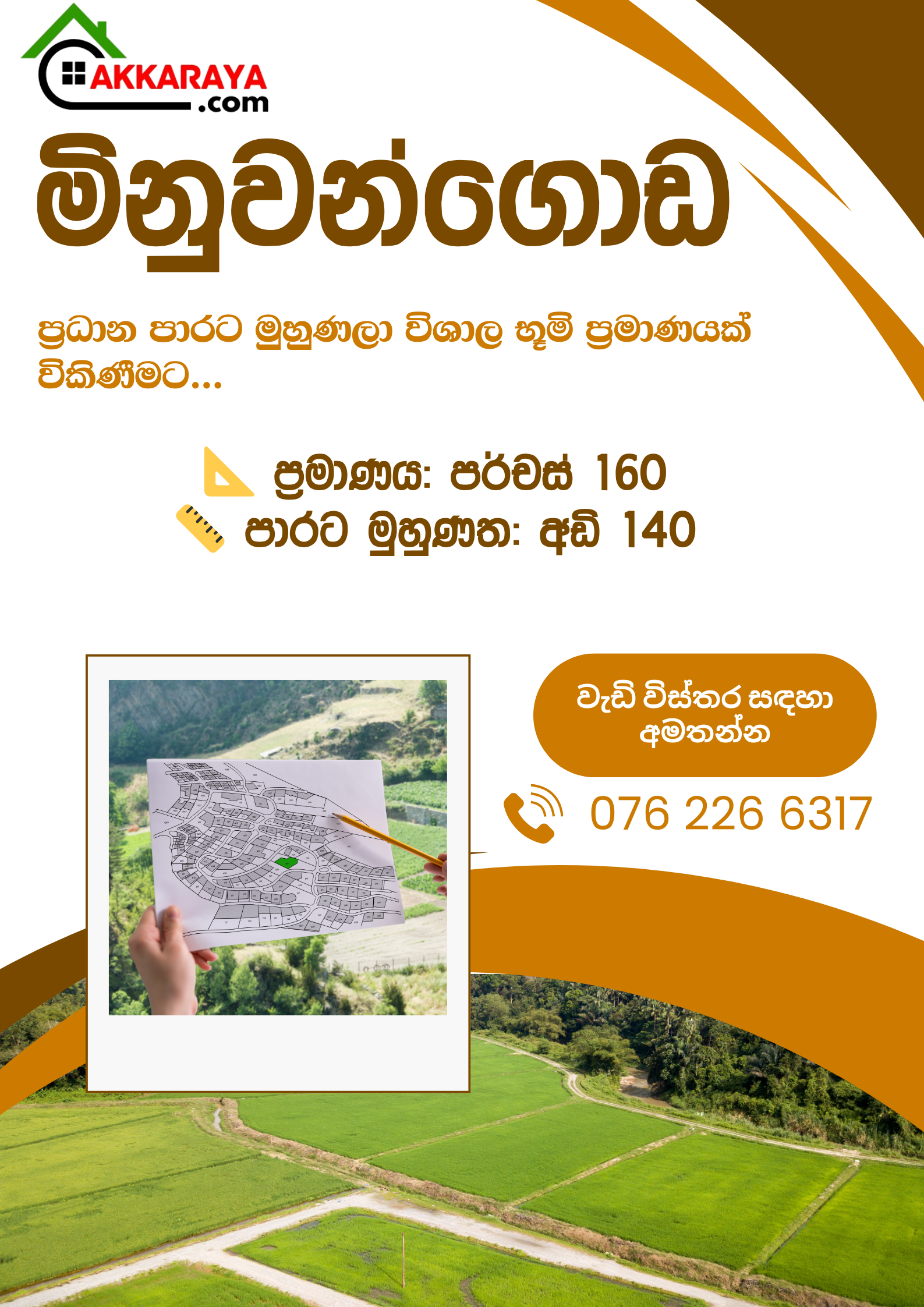 📐 ප්රමාණය: පර්චස් 160📏 පාරට මුහුණත: අඩි 140